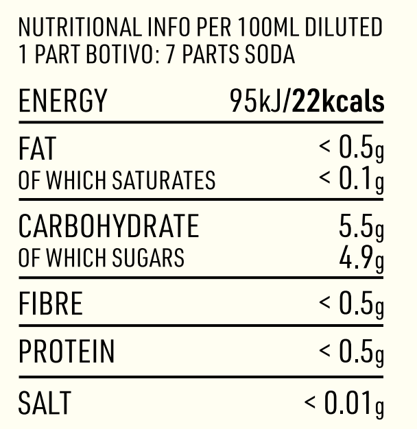 Serve 25ml (1 part) Botivo to 175ml (7 parts) soda over ice with a juicy wedge of orange.